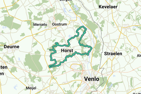 Die Route ist sehr abwechslungsreich und führt über viele unbefestigte Wege (hauptsächlich Gravelwege) in und um Naturschutzgebiete wie die Schadijkse Wälder, entlang des Molensbaches von Lottum, vorbei an der Groote Molenbeek bei Horst, Naturschutzgebiet 't Ham, Het Schuitwater (einem alten Maasarm bei Meerlo), 't Sohr, Swolgender Heide, Schuitwater (einem alten Maasarm bei Lottum), Reulsberg und dem Heesberg. Außerdem wirst du durch landwirtschaftliche Gebiete (östlich von Horst, südlich von Kronenberg und südlich von America) fahren. Du passierst auch die Burgruine von Horst und das Schloss Borggraaf (Lottum). Und die Route verläuft zweimal entlang der Maas.