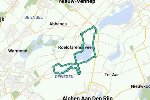 Eine Radtour rund um den Braassemermeer. Obwohl Fährboote verkehren, um die Route abzukürzen, wurde bei dieser Tour entschieden, stets zu fahren und die Brücke zu benutzen, um das Wasser zu überqueren.
