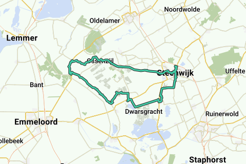 "RC-Weerribben" beginnt als Fahrradaktivroute 7 von 2009 und folgt dieser Route nach Giethoorn, Muggenbeet und den Niederlanden. Ab Baarlo wird der Deich nach Kuinre und über Slijkenburg nach Ossenzijl verfolgt. Aufgrund einer lokalen Veranstaltung am Tag der Befahrung der Route wurde die Strecke von Ossenzijl geändert und führt entlang des Kanals Steenwijk-Ossenzijl zurück nach Steenwijk.