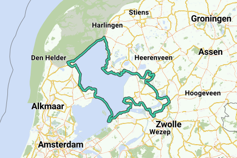 Diese Route ist rund um das IJsselmeer angelegt. Die Route führt durch eine Reihe unterschiedlicher Landschaften: die alte westfriesische Meereslehmlandschaft in Noord-Holland, die junge Meereslehmlandschaft der modernen Entwässerungsgebiete (Wieringermeer und Oostelijk Flevoland), die Greidhoek im Westen von Friesland, das Geschiebelehm- und Sandgebiet von Gaasterland in Südwest-Friesland und das Niedermoorgebiet in der Nordspitze von Overijssel.