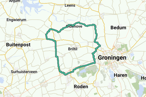Start- und Endpunkt der Route: 11 Herestraat, 9843AH Grijpskerk. Erkunde die Kirche von Leegkerk mit dem Rennrad.