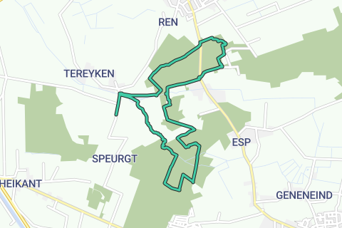 Weiter führt die Route wieder durch Wiesen zum Grotelsche Wald. Über schöne Waldpfade gelangt man wieder zur Esperloop. Wir folgen dem gewundenen Bächlein, zuerst durch den Wald, später wieder durch die offenen Wiesen und Heideflächen. Auf dem letzten Stück kommt man zur Staustufe in der Esperloop und der Spaziergang endet.