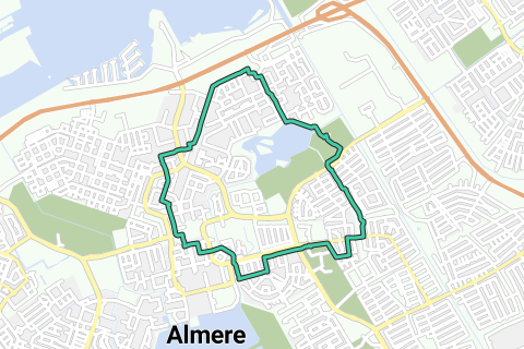 Eine schöne Schleife durch Almere. Diese Route hat das Thema "Wälder". Genießen Sie während dieser Route den Duft der Bäume. Sie können die öffentlichen Verkehrsmittel nutzen, um zu dieser Route zu gelangen. Halten Sie unbedingt an den Aue Paviljoens an. Die schönen Straßen wechseln sich in schnellem Tempo ab.