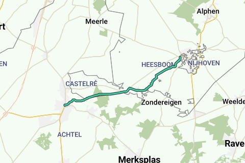 NB. Die jetzt ausgelegte Route betrachte ich als einen sehr akzeptablen Kompromiss zwischen Wandervergnügen und Historizität. Zweifellos bietet die sehr schöne Umgebung Wanderwege, die in Bezug auf Naturschönheit noch mehr zu bieten haben. Cor Hermans aus Meerle schlägt so ein Alternativ vor: über die Torendreef nach Süden nach Wortel und von dort weiter in Richtung Hoogstraten. In der Tat ein schöner Wanderweg. Diese Variante wird meiner Meinung nach jedoch der Geschichte nicht ausreichend gerecht, die schließlich maßgeblich bei 'Historische Routen' ist. Die Route von Hermans verpasst insbesondere die Baarlebrug bei Zigrak, wo Hugo de Groot das Merkske überquerte.