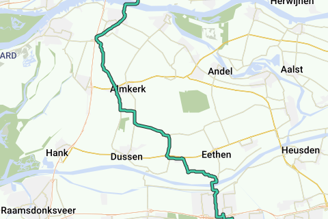 Diese Etappe beginnt an den Anlegestellen von Riveer in Gorinchem für einen zweiten Überfahrt über die Merwede. Nun nach Sleeuwijk.
