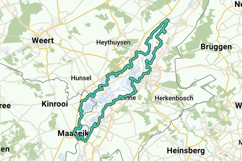 Wunderschöne Strecke möglichst entlang der Maas. In Maaseik wartet eine köstliche Tasse 'Kaffee' mit 'Knabbuk'.