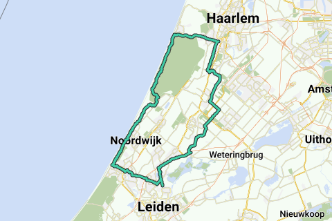 Schöne ruhige Route entlang von Lisse und Bennebroek nach Zandvoort, durch die Dünen zurück nach Katwijk und entlang des Kanals wieder nach Leiden
