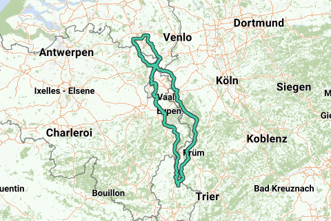 Omloop Valkenswaard Diekirch Valkenswaard ist eine anspruchsvolle 2-tägige Tour über eine abwechslungsreiche und verkehrsarme Strecke durch 4 Länder von Valkenswaard nach Diekirch entlang der Landesgrenzen. Die Route führt weiter durch eine schöne und abwechslungsreiche Landschaft über die Hügel von Dorf zu Dorf, wo die Zeit manchmal stehen geblieben zu sein scheint. Über Limburg entlang der Maas und der Voerregion in die belgischen Ardennen. Die Route führt über die Hohen Venen nach St. Vith und ins Ourtal. Am Dreiländereck von Belgien, Deutschland und Luxemburg wird der Übergang nach Deutschland gemacht. In der Hochfläche in Richtung Dasbourg sind die Ausblicke wunderschön. Die Route geht weiter über kleine Straßen nach Diekirch in Luxemburg. Hier kann übernachtet werden, um am nächsten Tag über Vianden in die deutsche Eifel zu fahren. In Richtung Prüm geht es über den höchsten Punkt der Schneifel, den 700 m hohen Schwarzen Mann. Durch die dichten Wälder geht die Route weiter nach Schleiden und dann in nordwestlicher Richtung nach Aachen. Auf dem Weg nach Susteren wird die Straße flatter und die Maas wird überquert, mit dem Wind meist im Rücken. Schließlich führt die Route über Bree und Hamont-Achel zurück nach Valkenswaard. Die Route ist inspiriert von der Tour Diekirch-Valkenswaard von Wim Kemps, die jedes Jahr am letzten Samstag im August ausgetragen wird.