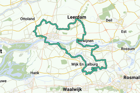 Diese Runde führt durch drei Werte: die Bommelerwaard, die Tielerwaard und die Alblasserwaard. Ein Wert ist ein alter Name für eine flache Landschaft in einem Flussgebiet. Das bedeutet, dass du auf dieser Route entlang der Flüsse Maas, Waal, Linge, Giessen (einem Moorfluss) und der Afgedamde Maas radelst. Unterwegs begegnest du vielen Fotomotiven (Festungsstädtchen Heusden und Woudrichem, Fort Herwijnen, Schloss Ammersoyen, Slot Well und viele Ausblicke von den Flussdeichen, Mühlen usw.). Auf dieser Route nimmst du auch zwei Fähren: Herpt-Bern und Brakel-Herwijnen.
