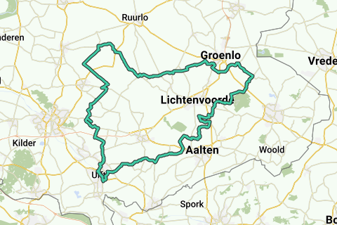 Die Route verläuft im Uhrzeigersinn und beginnt am Parkplatz entlang der Alten IJssel in Ulft. Die Route führt dich durch die Achterhoek. Du kommst am Schloss Slangenburg vorbei (die Route führt hier auch kurz hin (eine Sackgasse)), du fährst über den Straßenkurs Varsselering (an Christi Himmelfahrt finden hier zwei Tage lang Rennen statt, die Straße ist dann nicht zugänglich), du fährst entlang des Bächleins Veengoot (mit einer Länge von 1 km einen schmalen asphaltierten Radweg entlang einem Sandweg). Außerdem fährst du durch die typischen Landschaften mit Kulissen, besonders in der östlichen Achterhoek.
