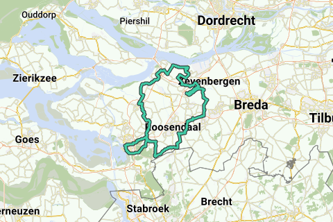 Neue längere Route, aufgebaut aus Teilen verschiedener anderer Routen und in entgegengesetzter Richtung. Eine Fahrt, die größtenteils den Grenzen von Westbrabant folgt, über Teile der Brabanter Wal, Hollandsdiep und entlang der Mark bis zur belgischen Grenze.