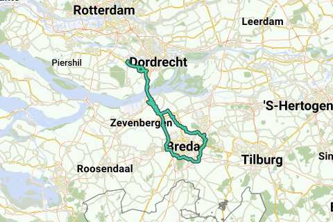 Clubrit De Hoekse Renners. Start/finish clubhuis, Sportlaan 6, Puttershoek. Via Kiltunnel und Moerdijkbrug nach Terheijden, wo der Markkanaal über die Brücke überquert wird. Anschließend geht es durch das Waldgebiet unter Oosterhout nach Ulvenhout. Nach einer Kaffeepause vorbei an Breda und über Prinsenbeek und Zevenbergschenhoek wieder in Richtung Moerdijkbrug. Danach über die Kiltunnel zurück in die Hoekse Waard. Kaffeepause bei De Fazant, Ulvenhout.
