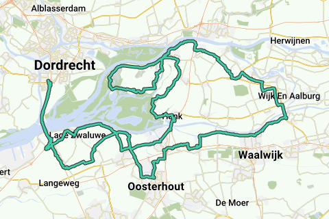 Wunderschöne Halbtagsroute, die in Dordrecht beginnt. Das erste kurze Stück führt notwendigerweise über die Autobahn. Die Route verläuft hauptsächlich über Polderwege von Raamdonksveer zur Noordwaard Polder in De Biesbosch. Danach fahren wir durch das Land van Altena nach Waspik in Brabant und im Süden von Raamdonksveer besuchen wir nochmals die wunderbare Natur rund um Kromgat. Über das Gat van Den Ham gelangen wir nach Lage Zwaluwe. Das letzte kurze Stück zurück nach Dordrecht führt ebenfalls notwendigerweise über die Autobahn.
