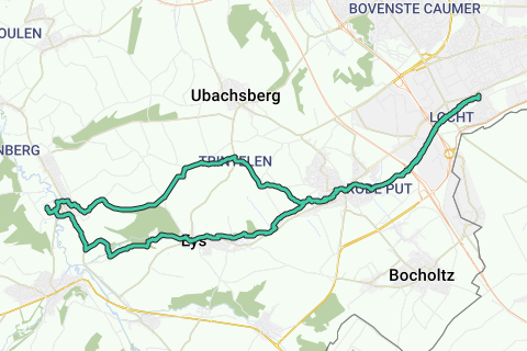 Langs der Bahn nach Simpelveld und dann führt die Route durch die schöne Hügellandschaft, wo wir die ruhigen und wunderschönen Felder und Wiesen mit herrlichen Ausblicken genießen. Alte, frühere Kalköfen und eine Erinnerung an die Grauen der letzten geführten Kriege in dieser Region. Doch schon bald landen wir bei der Wassermühle und den Beemden in Wylre. Falls unterwegs noch kein Getränk genommen wurde, kann dies selbstverständlich hier bei der Brauerei geschehen, aber danach führt die Route wieder zurück nach Kerkrade über Eys und Simpelveld, um erneut am Gleis zurück zum Ausgangspunkt zu kehren.