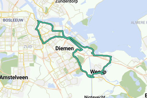 Von Amsterdam Centraal Station stehst du in Richtung des ältesten Teils Amsterdams, wo sich auch die Wallen (Rotlichtviertel) und der Nieuwmarkt befinden. Du passierst den Markt am Waterlooplein, die Stopera und fährt entlang der Amstel in Richtung des Transvaalviertels. Wo die Amstel und der Ringvaart aufeinandertreffen, biegst du links ab, um am Ringvaart Amsterdam zu verlassen und Kurs auf den ‚Garten Amsterdams‘ zu setzen.