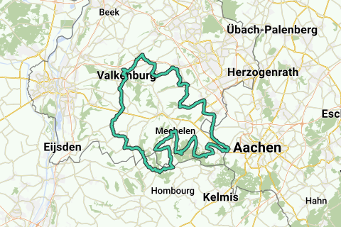 Rundfahrt Heuvelland 32 von Slenaken. Start/Ziel: großer Parkplatz Fuß Loorberg Slenaken. Anstiege: Grensweg Slenaken 400 m., max. 10,0%. Kasteelstraat Teuven (B) 1.200 m., max. 10,0%. Eperheide Epen 1.400 m., max. 8,0%. Bommerigerweg Mechelen 1.300 m., max. 3,0%. Camerig west (teilweise) Vijlen 2.300 m., max. 8,0%. Vijlenstraat/Vijlenberg/Rugweg Vijlen 2.300 m., max. 8,0%. Ulegats Holset 600 m., max. 5,0%. Lemiersberg Lemiers (D) 900 m., max. 12,0%. Trintelenberg Eys 2.100 m., max. 7,0%. Veurderberg Voerendaal 1.300 m., max. 8,0%. Koulenberg Ransdaal 600 m., max. 11,0%. Schoolstraat Klimmen 500 m., max. 6,0%. Daalhemerweg Valkenburg 1.900 m., max. 6,0%. Bergstraat Banholt 750 m., max. 7,0%. Waufsberg Noorbeek 1.000 m., max. 12,0%. Höhenmeter: 1.171. Kaffeestopp: Het Biechthuis, Irmstraat 1, Simpelveld (di geschlossen).