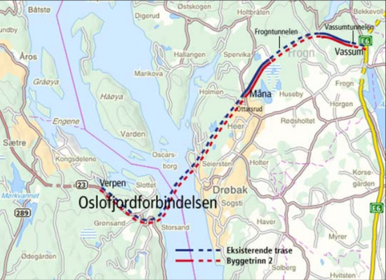 Der Tunnel wurde durch Maut finanziert. An der am 21. August 1996 gegründeten Mautgesellschaft Oslofjordtunnelen AS waren zu jeweils 50 % die beiden Fylken Akershus und Buskerud beteiligt. Die Gesellschaft sammelte Geld ein, um den Bau der Oslofjordverbindung von Bjørnstad in Røyken bis Vassum in Frogn zu finanzieren. Das 26,7 km lange Teilstück der Riksvei 23 beinhaltet noch fünf weitere Tunnel sowie einige Brücken und verbindet die Europastraße 6 in Akershus mit dem Riksvei 282, der bei Drammen in Buskerud an die E 18 angeschlossen ist. Nach der Abzahlung des Projektes, das 1,3 Milliarden norwegische Kronen gekostet hat, ist der Tunnel seit 2016 mautfrei zu befahren.