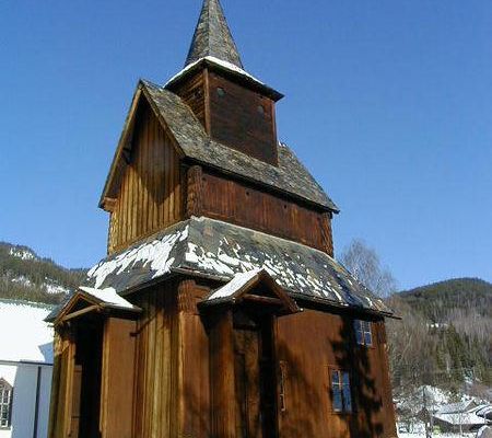 Urkundlich erwähnt wurde sie erstmals 1310, lässt sich aber dendrochronologisch um 1200 datieren und ist vermutlich ein Nachfolgebau einer früheren Holzkirche, von der einige Bretter mit Schnitzereien im Urnes-Stil gefunden wurden. 1880 sollte sie vollständig abgerissen und durch einen neuen Kirchenbau ersetzt werden. Der private Altertumsverein Foreningen til norske Fortidsminnesmerkers Bevaring, der bereits die Stabkirche Wang vor dem Abriss rettete, setzte sich für die Erhaltung der Kirche ein.