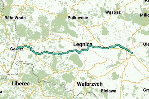 Pilgerroute für Mountainbikes zwischen Wroclaw und Görlitz. Die folgenden Städte liegen an der Route: Wroclaw, Legnickie Pole, Luban, Görlitz