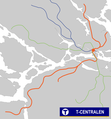 T-Centralen bildet das Herz des Stockholmer U-Bahnnetzes. Das T zu Beginn des Stationsnamens steht für tunnelbana . An der Station T-Centralen treffen alle Linien des Stockholmer U-Bahn-Systems zusammen. Dieser Umstand sowie die Lage in der Innenstadt und der Nähe zum Hauptbahnhof machen die Station zur meistfrequentierten in der schwedischen Hauptstadt. Sie befindet sich im Stadtteil Norrmalm, zwischen Sergels torg und Vasagatan.