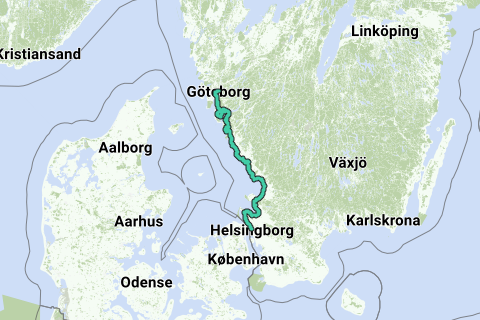 Dies ist Schwedens bekannteste und beliebteste nationale Touristenfahrradroute. Die ursprüngliche Version verläuft von Süden nach Norden: von Helsingborg nach Göteborg im Norden. Diese Version verläuft jedoch in umgekehrter Richtung.