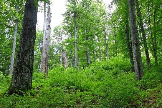 Das Aufnahmegebiet von Uholka-Schyrokyj Luh umfasst 10'300 ha Wald, wovon 8800 als Urwald gelten, der Rest ist Naturwald. Auf 314 Probeflächen von je 500 m2 Größe wurden alle Bäume ab 6 cm Durchmesser vermessen. 97 % sind Buchen, wovon die ältesten maximal 500 Jahre alt sind. Von den 6779 lebenden Probebäumen war der dickste eine Ulme mit 150 cm BHD, die dickste Buche hatte 140 cm BHD. Pro Hektare stehen 10 Buchen von mindestens 80 cm Durchmesser. Die Stammzahl der lebenden Bäume beträgt 435 N/ha, die Grundfläche 36,6 m2/ha und das Volumen 582 m3/ha. Zudem wurden 163 m3/ha stehendes und liegendes Totholz ermittelt. Die vertikale Struktur des Waldes ist vorwiegend dreischichtig, und Lücken im Kronendach sind meist kaum größer als die Krone eines herrschenden Baumes.