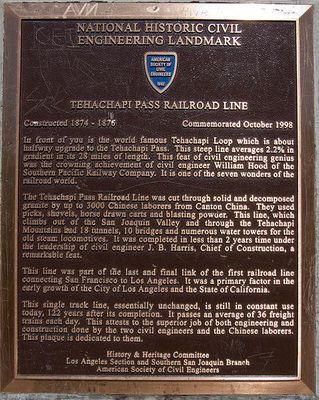 Die Bahnlinie über den Tehachapi Pass verbindet Bakersfield im San Joaquin Valley mit Mojave im Antelope Valley. Sie wurde in den Jahren 1874 bis 1876 von der Southern Pacific Railroad unter Chefingenieur William Hood erbaut. Die eingleisige Strecke ermöglichte die erste Eisenbahnverbindung zwischen San Francisco und Los Angeles.
