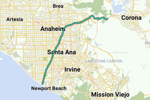 Der Santa Ana River ist der größte Fluss Südkaliforniens in den Vereinigten Staaten. Sein Einzugsgebiet umfasst vier Landkreise. Er entspringt in den San Bernardino Mountains und fließt an den Städten San Bernardino und Riverside vorbei, bevor er durch die Nordspitze der Santa Ana Mountains schneidet und nach Südwesten an Santa Ana vorbeifließt, um in den Pazifischen Ozean zu münden. Der Santa Ana River ist 96 Meilen (154 km) lang und entwässert ein Einzugsgebiet von 2.650 Quadratmeilen (6.900 km²).