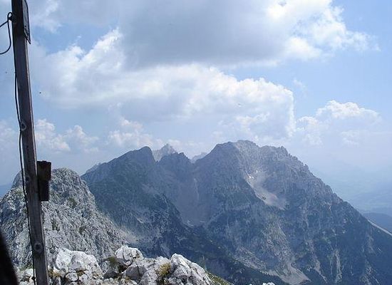 The Treffauer rises south of the main ridge and is therefore the most striking mountain in the Wilder Kaiser. Somewhat separated to the north of the Treffauer the long main ridge runs from west to east between the Scheffauer, Sonneck and Zentralkaiser around the Ellmauer Halt. In front of it to the south is the Tuxeck ).