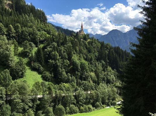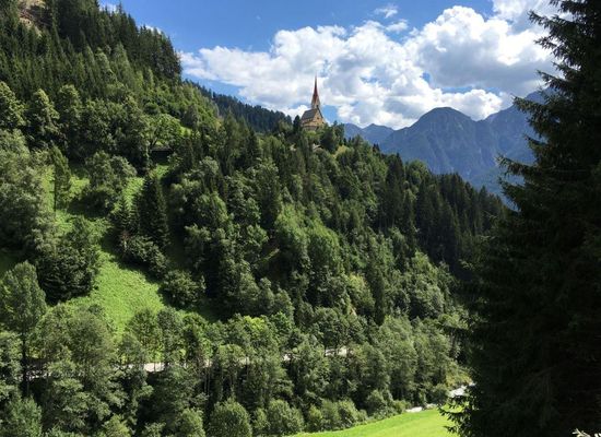 The hamlet of St. Justina is located in the municipality of Assling (near Lienz) along the Pustertal Alpine Road. The church of St. Justina is situated at an elevation of 1209 meters.