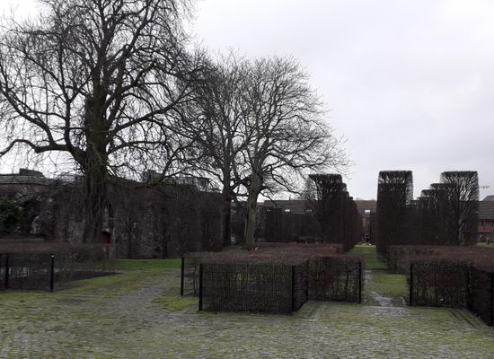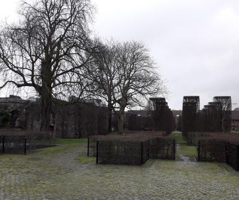 Almost no stone remains from the Saint Bavo village from Van Eyck's time. The 7th-century site also had a monastery with an impressive church in the 15th century, was partly surrounded by water, partly enclosed by strong walls, and had two stone entrance gates of imposing dimensions. A malicious Emperor Charles unleashed his demolition hammer in the 16th century, leveling almost the entire site to the ground and building a fortress here, where the monastery was relegated to oblivion, as a shadow of its former self, within the walls. Almost the only thing left today from the monastery can be found behind the ancient walls in Spanjaardstraat. Unfortunately, those walls urgently need restoration and are fenced off in some places. The monastery is open for visits every weekend from Friday to Sunday, between 2 PM and 6 PM, from Easter weekend until November.