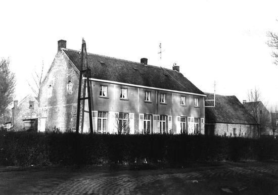 Already mentioned in the first half of the 17th century. Multifaceted farmhouse around a rectangular yard, surrounded by a hedge and a - partially filled - rampart. To the south, a residential house with an attached stable (ridge parallel to the street), to the east an old brewery building (ridge perpendicular to the street), to the west a stable (ridge perpendicular to the street), and to the north a recent cross barn (ridge parallel to the street).