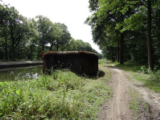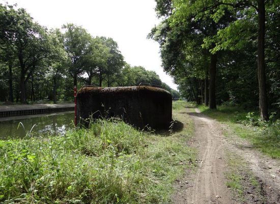 In 1935, the canals around Mol became part of the "Advanced Position" and the construction of the bunkers began. Most of them were built between 1937 and 1939. There are various types of bunkers, each with its specific construction and equipment. Along the Dessel-Schoten canal, we indeed find different types; most of them are bank bunkers. They were not designed for long-term stays: soldiers did not remain there for more than a few days. There was no sanitation or sleeping space. From this bunker, called E13bis, Captain Commander Léon Populair had to command the troops in the bunkers. For defense, this bunker was equipped with 2 Maxim machine guns (type M1908) that could each fire 400 shots per minute. A replica of this type of machine gun can be viewed in the visitor area of the Sas4 Tower. There were also barriers with barbed wire and minefields surrounding the construction. The hand grenade hatches next to the door and on the front wall provided the opportunity to eliminate infiltrating enemies. To observe the surroundings, there was a periscope provided in the roof. On May 12 and 13, 1940, the enemy made several attempts to take bunker E13bis. All attacks were repelled by the Belgian and French troops. Only the German army incurred losses in this. Lieutenant General Six, commander of the 18th Infantry Division, later wrote the following: