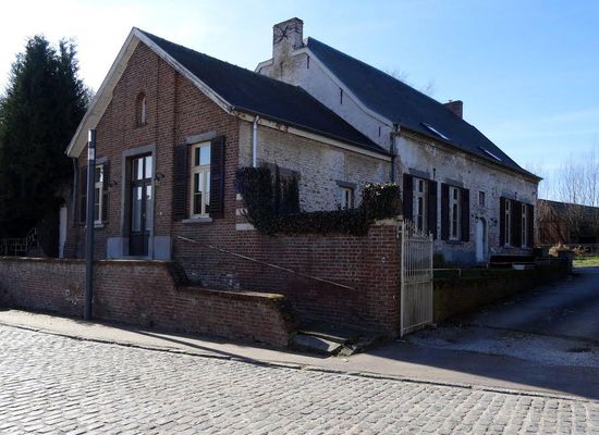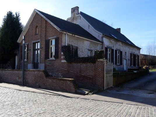 Originally one storey high with a curved wolf roof from the first quarter of the 18th century (1705 according to Wauters). Traditional brick and sandstone construction; rectangular windows with stretch, previously fitted with cross-bar frames; two preserved round-arched doors: more elaborate type of the façade with mullions on studs and equipped with imposts, a drip moulding with keystone and a fanlight marked by a cornice; Brick frieze under the cornice of the rear façade.