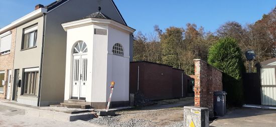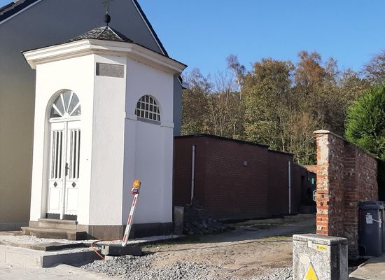 According to an archive text referred to in a framed text inside the chapel, the local veneration of Saint Barbara dates back to the beginning of the 16th century and is said to have led to the construction of a chapel on this site. According to inscriptions on the exterior, the chapel, built in 1756, was rebuilt in 1819 by Antoon Van Hoorick. Two bluestone memorial stones at the top of the front of the chapel on either side of the door bear the following inscriptions: on the left: "Dit Kapelle/ eerste Gebouwe/ int Jaer 1756." and on the right: "Vernieuwt en erplaetst/ door den Heer/ Antoon Van Hoornick/ 1819". Restored in 1969 thanks to Henri de Lovinfosse. Neoclassical tinted eight-sided road chapel (on square ground shape with chamfered corners) covered by tent roof (slates and artificial slates),