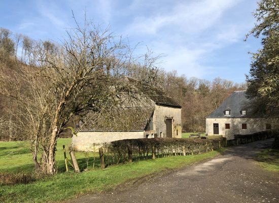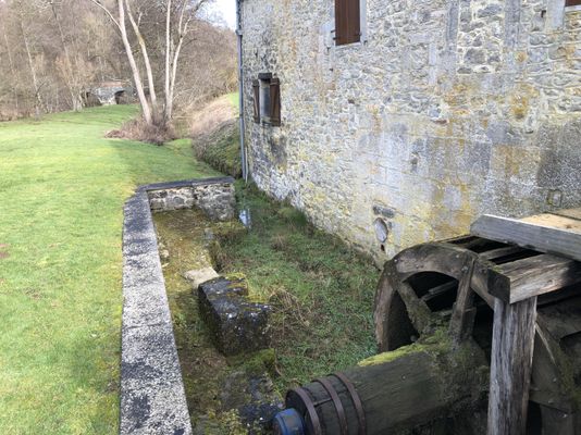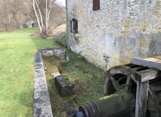 The Hamoir mill, the oldest of the three mills in Soulme, beautifully restored, occupies a peaceful site along the Hermeton. The existence of the Soulme mill is recorded as early as the 15th century. In 1466, during the sack of the city of Dinant, the Burgundian troops destroyed the "molin de Gosegnée". The Soulme mill was then located in the territory of Gochenée, on the same bank of the Hermeton. The road that connects it today to Soulme dates only from the 19th century, and it is likely that at that time the path to Gochenée was also easier. In the early 16th century, the mill was rebuilt. It became a communal mill, and the miller paid an annual rent that appears in the records of the abbey of Florennes. The records of the abbey of Florennes indicate, as early as 1501, that the Soulme mill was held by inheritance by Henry Thomas, originally from Gochenée. He paid the abbey an annual rent of 111 gold francs or the equivalent value in kind. On May 20, 1536, the abbot concluded another lease of the communal mill for the benefit of a certain A. Andry. In its current state, the Soulme mill dates back to the 17th century or early 18th century. The date of 1774 is engraved in various places, notably on a stone near the bief which is inscribed: The bief, built by the miller Willeval in the second half of the 17th century, brings water to the mill from the dam located upstream while passing underground beneath the mill courtyard. The bief is again above ground a few meters before the first wheel, and the flow is regulated by two sluices. The Soulme mill has been classified as a monument, and the lands surrounding it as a site by Royal Decree of December 6, 1976. On October 5, 1995, a decree from the Ministry of the Walloon Region classified as monuments the structures built upstream and downstream of the Soulme mill, namely, upstream, the dam and the regulating sluices on the Hermeton, as well as the canalized bief and the sluices preceding the wheel; downstream, on the communal path, the bridge over the Hermeton and the culvert on the bief.
