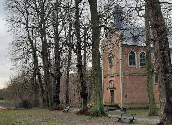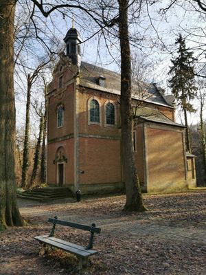The chapel of Saint-Hubert, built in 1616 in baroque style by the architect of their court, Wenceslas Cobergher. The chapel and "the horseshoe" as well as the 7 km wall are the only remains of the castle of Tervuren of the Dukes of Brabant.
