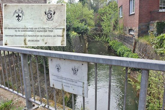 As stated on the commemorative plaque at the bridge, fortunately, the Belgian army was there to assist the residents.
