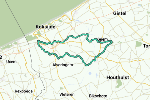 Route: Diksmuide, Lampernisse, Eggewaartskapelle, Oeren, Houtem, Adinkerke, Veurne, Booitshoeke, Stuivekenskerke, Keiem
