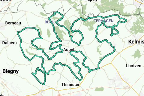 S.G.V. - S.M.V. – (∆ Ulvend – De Plank) – – Δ Veurs – Hagelstein – direction Merckhof – ∆ Mabroek – Remersdaal – ∆ Red Forest – right Teuven – Δ Sippenaeken – Terstraten – before Gemmenich right – right -∆ Plombières – left Montzen Station – Δ Teneiken – Plombières – at the church on the left Δ direction Homburg – right Terhagen – left ∆ Homburg – at the church in Montzen – right Vivier (▲▲ Kinkenberg) – Henri-Chapelle – crossroads on the right towards Battice – right Val de la Berwinne – right intersection ∆ La Clouse – Aubel – left Long Hedge – ∆ Winandchamps – Clermont – Froidthier – crossing – T left – 1st road left, right Bois de Halleux – Charneux – ∆Warrimont – Grote weg rechts – right Rosmel – ∆ Fosselette – Charneux – Wadeleux – keep left until ∆ Julemont – main road on the right via ∆Mortroux – Bombaye – Warsage – main road to ∆ Bois de Winerotte – right Neufchateau – Val-Dieu – ∆ Gorhez – left Donsart – main road left – right∆ St Jean-Sart – Magis – S.M.V.