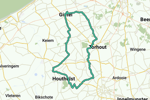 From Gistel towards Klerken, over the known cobblestone section the Steenstraat. From Klerken along winding roads to the higher situated Hooglede. Returning to Gistel via Torhout.
