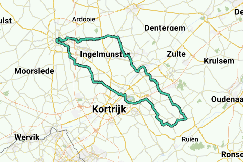 Route: Roeselare - Bosmolens (Izegem) - Lendelede - Sint-Katarina - Kuurne - Harelbeke - Sint-Lodewijk (Deerlijk) - Otegem - Tiegemberg (Hellestraat) - Vichte - Nieuwenhove (Waregem) - Desselgem - Ooigem - Oostrozebeke - Meulebeke - Ardooie - Roeselare.