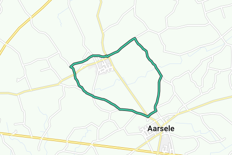 This route takes you along some of the well-trodden paths of the village of Kanegem. Along the grass-covered Tieltsevoetweg (locally known as 'Het Wegeltje'), you arrive at Axpoelmolenstraat and follow the Oude Gentweg (where you have a nice view of the lower-lying village center) until just in Aarsele. You return via the Oosthoek, until you are back in the center and pass the Sint-Baafskerk (also known as the Cathedral of the land, because it is so large for such a small village).