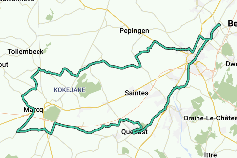 Lot - Buizingen - Halle - Lembeek - Tubize - Quenast(wood) - Wisbecq - Stoquois - Grand Champ - Hoves - Labliau - Mark - St-Pieters-Kapelle - Smeiersmark - Herne - Kokiane - Terlinden - Heikruis - Trop - Daal - Bellingen - Beert - Windmoleken - Don-Bosco Halle - Pacha - Buizingen - Lot