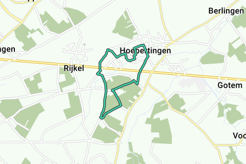 From Kasteelstraat 8, 3840 Hoepertingen, Belgium, We will go over the Sint-Truidersteenweg behind Konings (the former Looza) towards Rijkel, then we will turn back to Hoepertingen and take a loop through Brikhof back to the starting point.