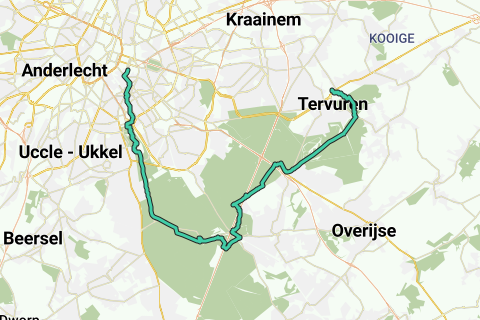 From Brus Lux Railway Station to Terminus of Tram line 44 via some highlights of the Zoniënwoud/Forêt de Soignes.