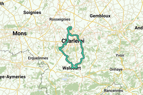 A robust ride through the outskirts of Charleroi, the south of Hainaut, and the west of the province of Namur. A cycling tour with surprisingly many variations. In the quiet village of Thiméon, you can easily park in the center. At first, the surroundings may seem a bit dreary, but as soon as we follow a stretch of the Sambre, the nature becomes more colorful and greener. From the Aulne Abbey Ruins, the route becomes quite hilly with beautiful panoramic views. Through this part of Hainaut and the province of Namur, one discovers the real, less touristy Wallonia (La Wallonie profonde), where there is still little industry, which makes the landscape all the more beautiful. The tour also offers us authentic, pretty villages where old traditions are upheld. Walcourt, situated on a steep cliff between the rivers Eau d'Heure and Eau d'Yves, is one such town with preserved folklore, medieval and picturesque. The monumental Basilica of St. Maternus, visible from afar, dominates the entire area. It is a centuries-old pilgrimage site of the Marian image.