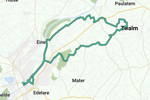 Bike tour through the Schelde and Zwalmtal, along the Ename Forest, Oosse, Vogelzang, Meerhem to Sint-Denijs-Boekel to Klein Zwitserland. Return via Ter Biestmolen, Schuisplank, and Rothweg in Welden. Along the towing path on the Schelde back to Oudenaarde.