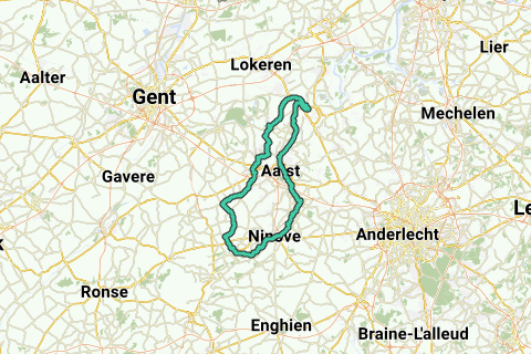 Beautiful flat but long route along the Scheldt and Dender. From Herzele to Schoonaarde, Dendermonde, Denderleeuw, Ninove, Aalst, and back.