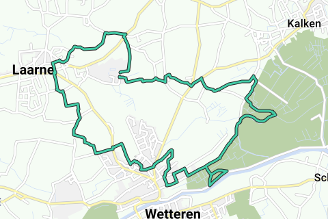 A route from Laarne through the Kalkenser meadows to the Scheldt in Wetteren.